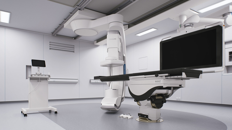 手術寝台と3次元画像ナビゲーション機能を搭載し、X線血管造影装置を組み合わせた「ハイブリッドオペ室」を導入します。